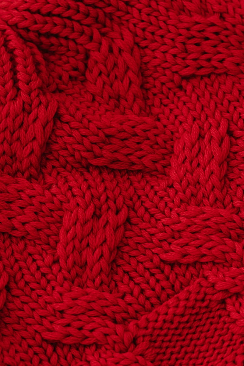 Z czym nosić czerwoną czapkę z warkoczem z wełny merino?