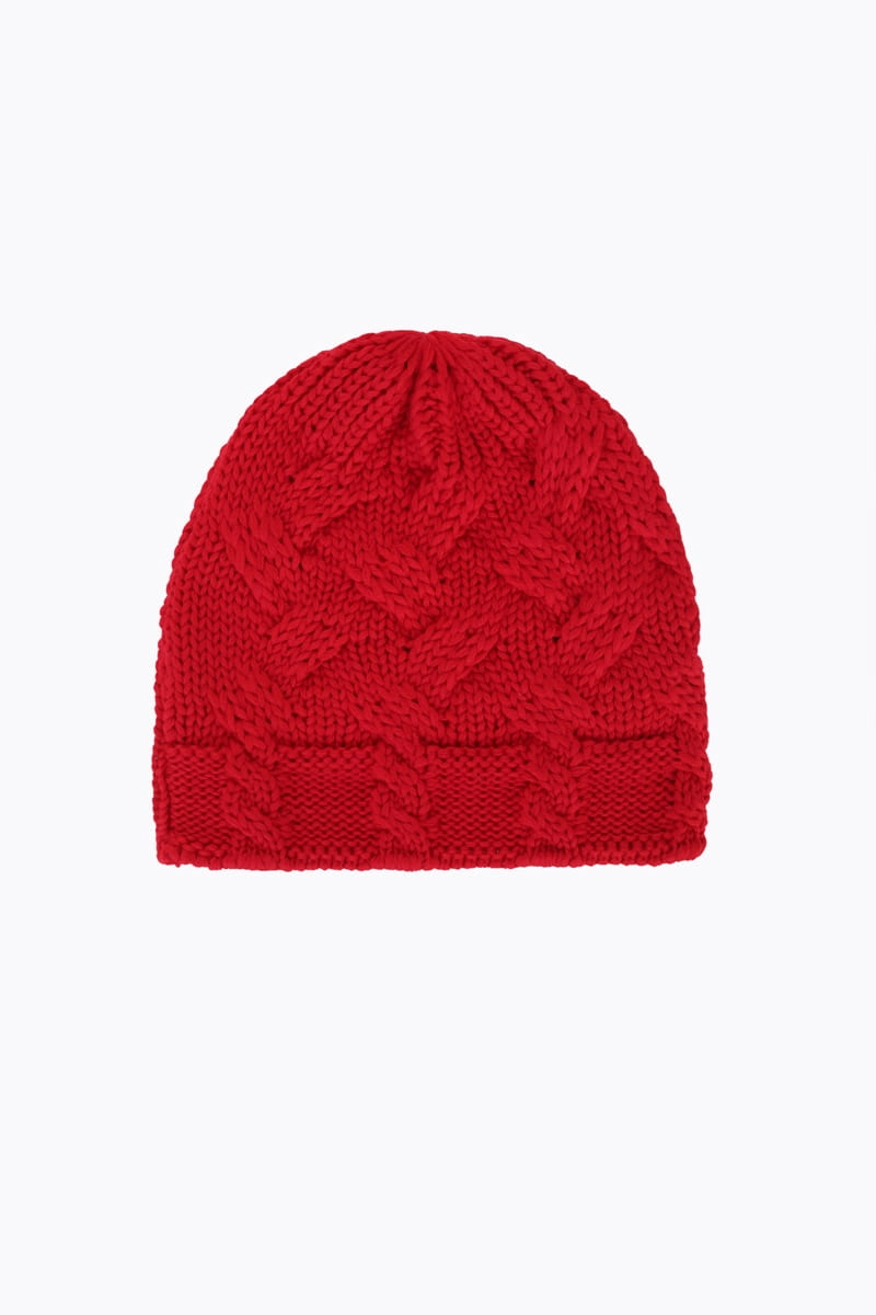 Czapka z warkoczem czerwona wełniana
