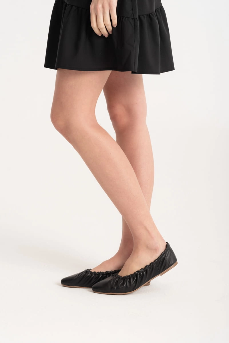 Czarne baletki Bella są perfekcyjne do tego, by tworzyć z nimi super stylizacje! Czerń można skomponować w prosty sposób z każdym kolorem, dlatego możesz pobawić się w kolory lub postawić na monochromatyczną, czarną stylizację. Baletki są tym typem obuwia, który świetnie prezentuje się do sukienek – tutaj masz wiele opcji, możesz wybrać swoją ulubioną z kolekcji Romance, ale też zakładając je do spodni np. Remi na gumce i nadając im elegantszy charakter.