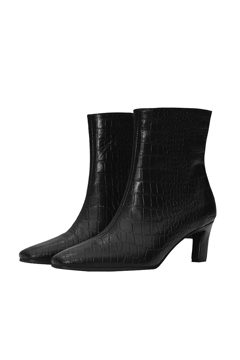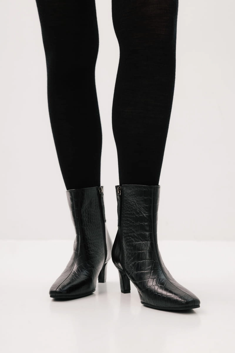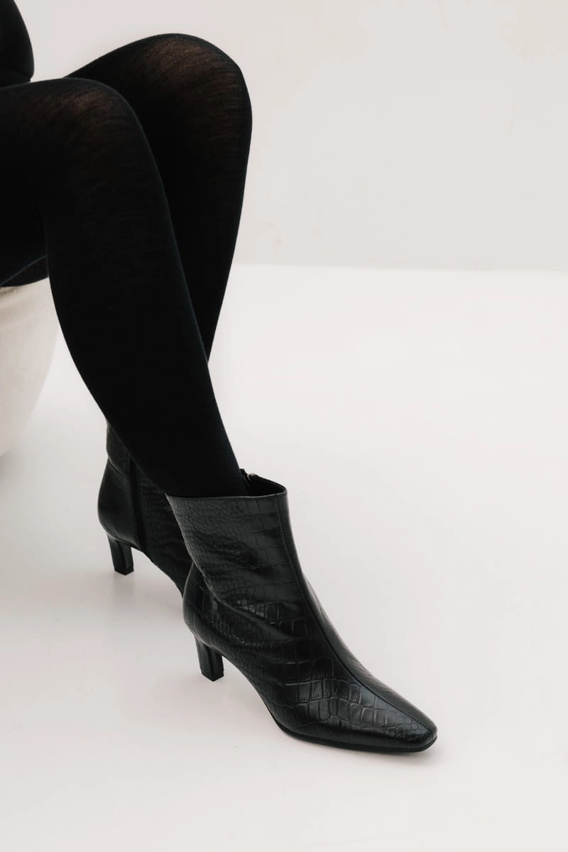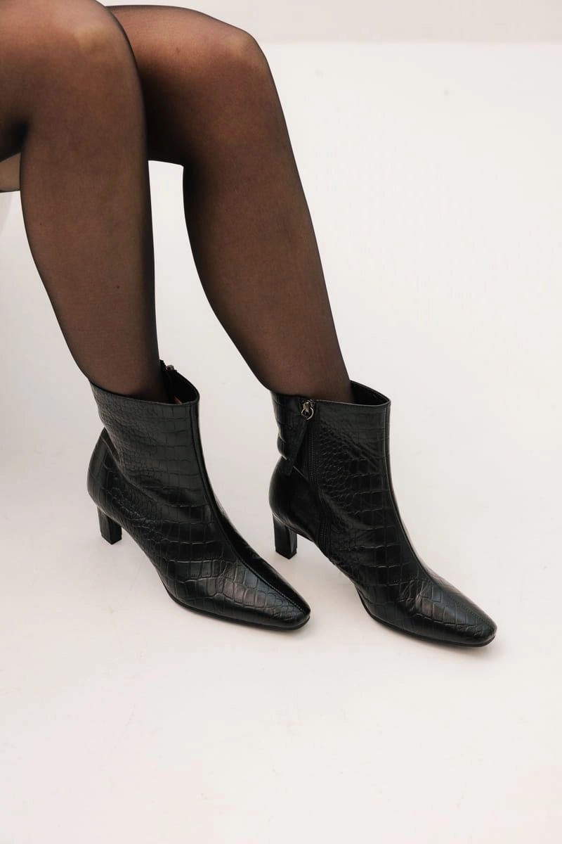 Poznaj nasze stylowe botki z obcasem o wysokości 6 cm, który dodaje elegancji i wydłuża sylwetkę, jednocześnie zapewniając komfort noszenia. Stabilny, kwadratowy obcas gwarantuje pewność każdego kroku, idealny na co dzień i specjalne okazje. Wsuwane zapięcie oraz praktyczny zamek sprawiają, że buty są łatwe w zakładaniu i zdejmowaniu. Cholewka sięgająca przed łydkę podkreśla nowoczesny charakter obuwia, a ścięty, wydłużony nosek nadaje mu smukły i elegancki wygląd. Te botki to doskonały wybór dla kobiet ceniących połączenie wygody z najnowszymi trendami mody.