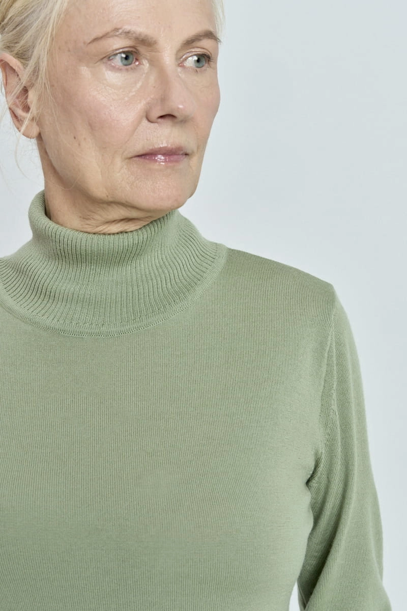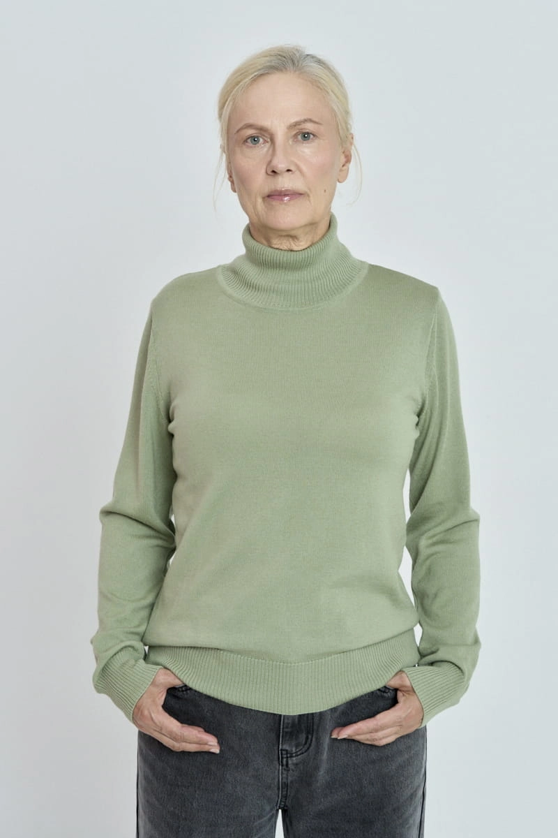 Ten model posiada długie rękawy zakończone delikatnie prążkowanym ściągaczem, który zapewnia komfort noszenia dodając przy tym wyrafinowanego wyglądu. Otulający golf chroni przed chłodem, tworząc przytulną barierę przed zimowym wiatrem, a jednocześnie stanowi stylowy akcent, który można łatwo komponować z innymi elementami garderoby.