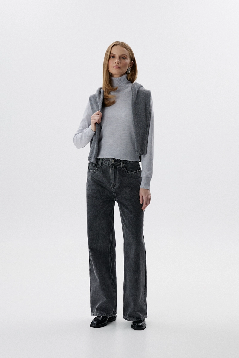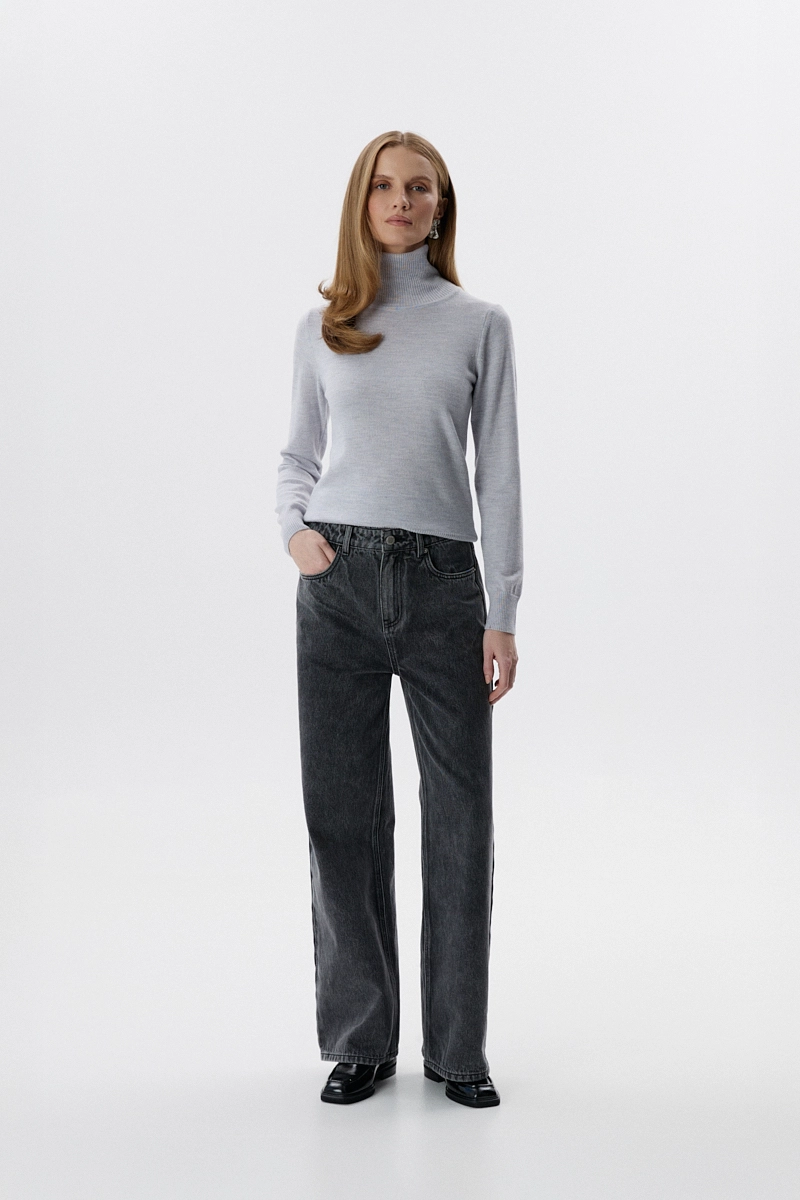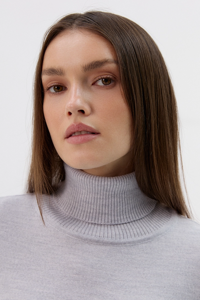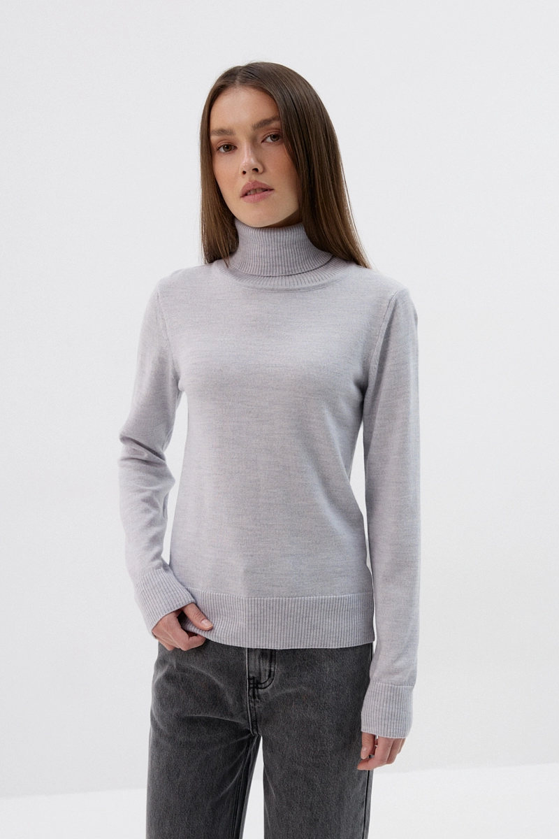 Golf Daisy – sweter damski 100% wełna, szary melanż