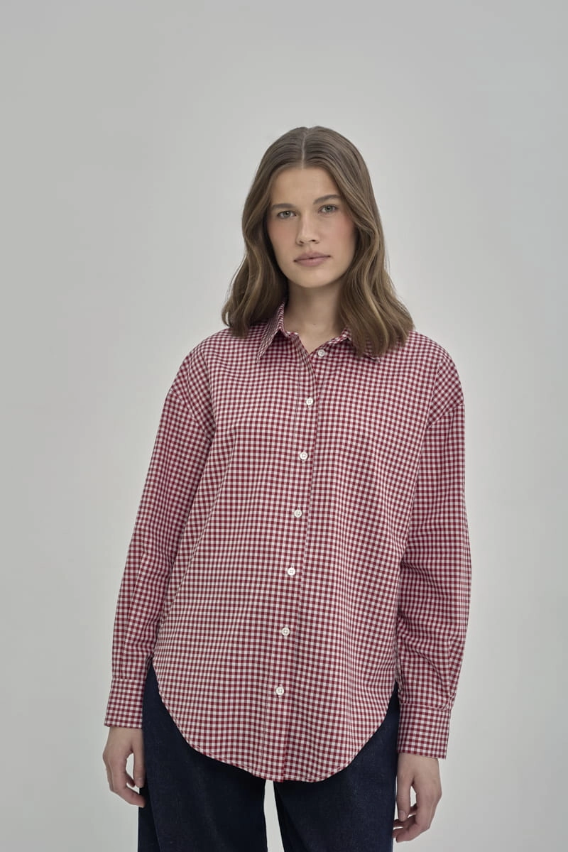 Długi rękaw wykończony mankietem dodaje klasy, a subtelne guziki o perłowym połysku wprowadzają nutę kobiecej elegancji. Tkanina bawełniana w drobną kratę sprawia, że koszula jest nie tylko przyjemna w dotyku i przewiewna, ale też niezwykle uniwersalna – pasuje do stylu casual, biurowego i weekendowego.