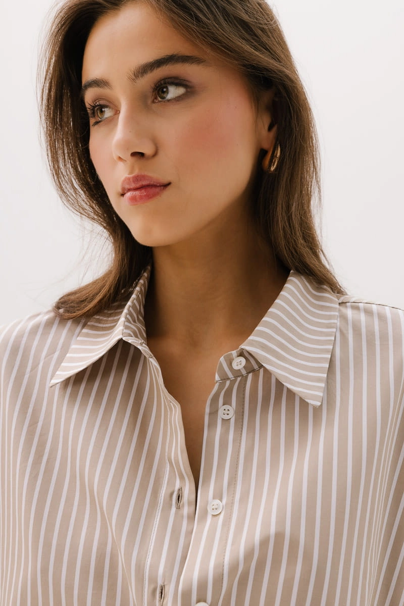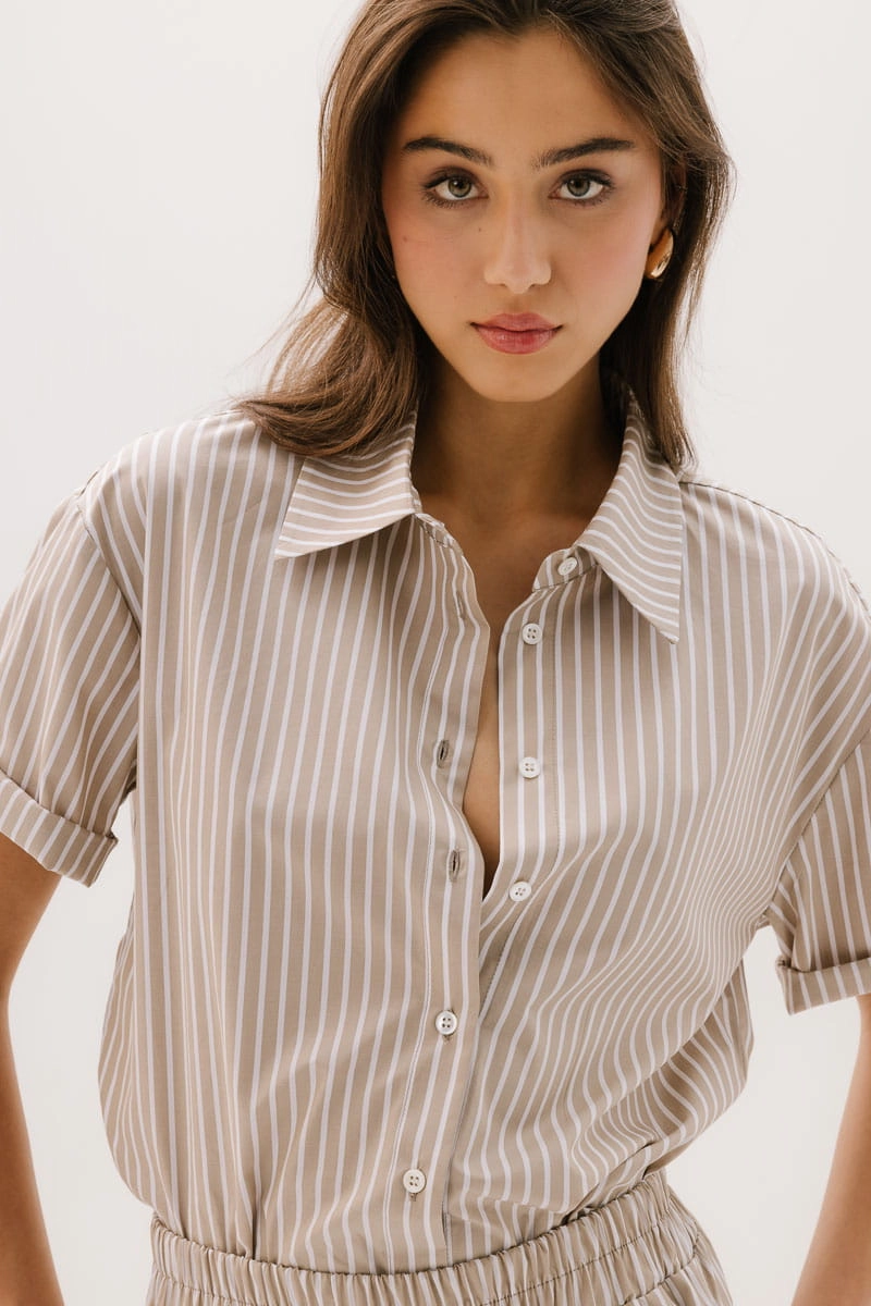 Koszula bawełniana z krótkim rękawem Vernazza, beżowa w paski