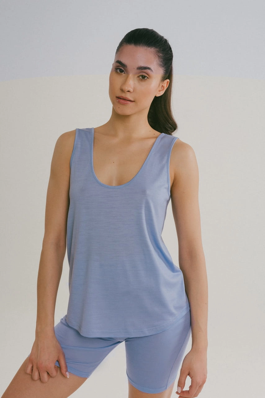 Koszulka Atlanta na ramiączka, niebieska, wełniana