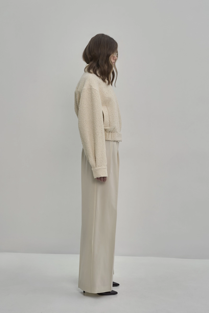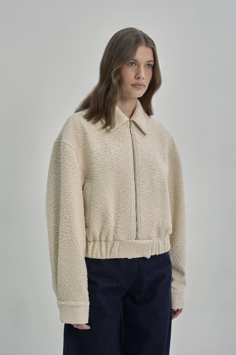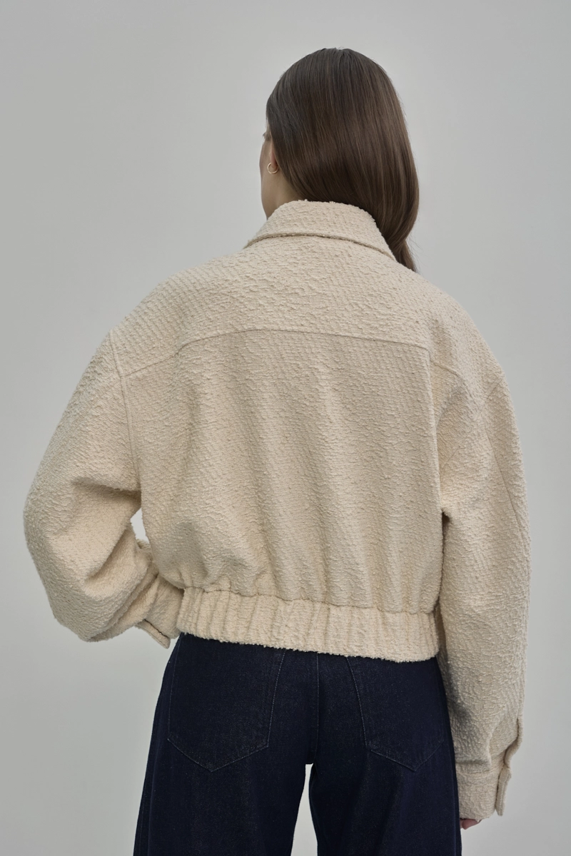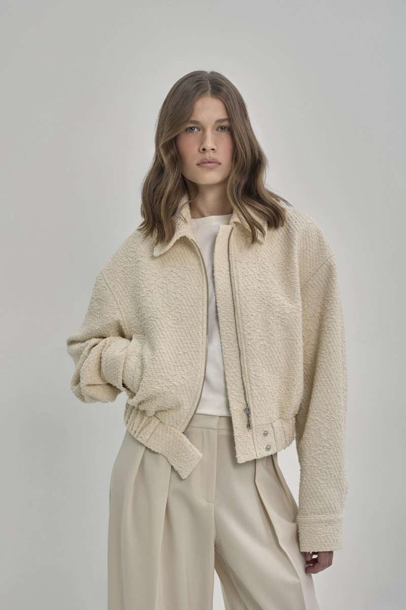 Kurtka typu bomber z kołnierzem to klasyk w nowoczesnym wydaniu. Jej uniwersalny krój i dopracowane detale sprawiają, że świetnie uzupełni zarówno codzienne, jak i bardziej eleganckie stylizacje. Została zaprojektowana tak, by łączyć komfort z wyrazistym stylem – posiada praktyczne zapięcie na suwak, a dół wykończony elastyczną gumą idealnie dopasowuje się do sylwetki, podkreślając jej kształt. Zapięcie na napy dodaje całości charakteru i sprawia, że kurtka wygląda wyjątkowo schludnie i nowocześnie. Noś ją jako okrycie wierzchnie lub, gdy jest zbyt zimno spokojnie możesz ja nosić zamiast marynarki.