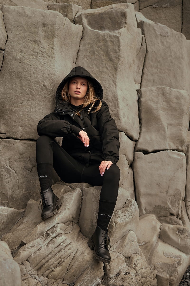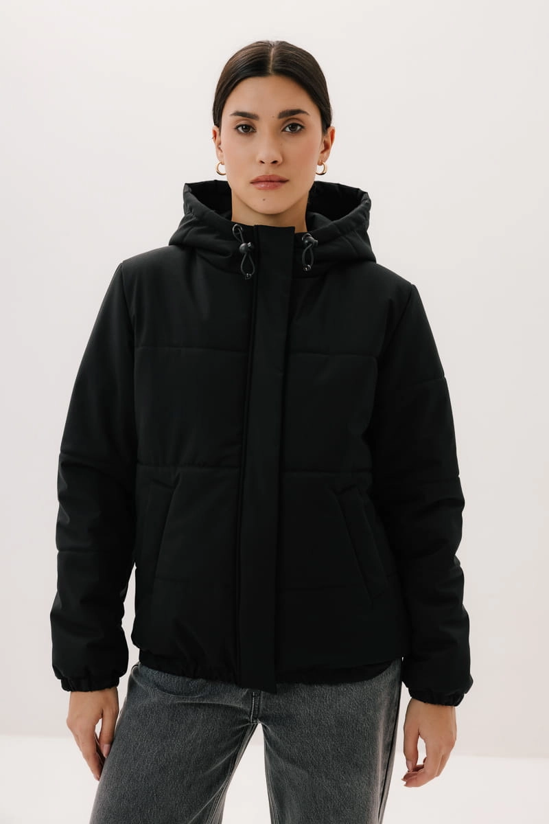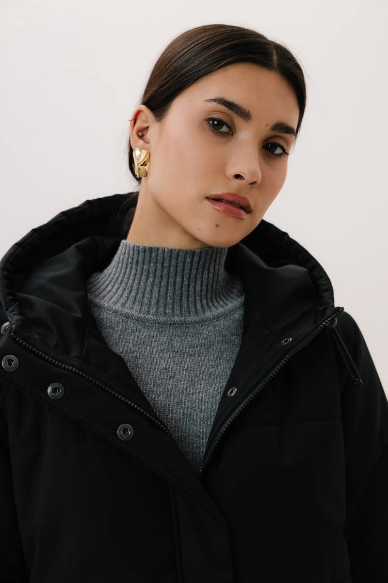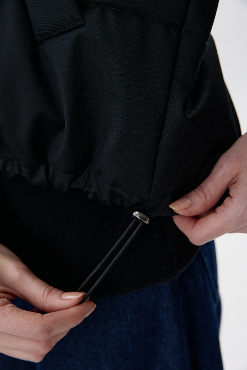 - Dodatki: guma w kapturze i na dole kurtki, metalowe stopery w kolorze ciemnego niklu;