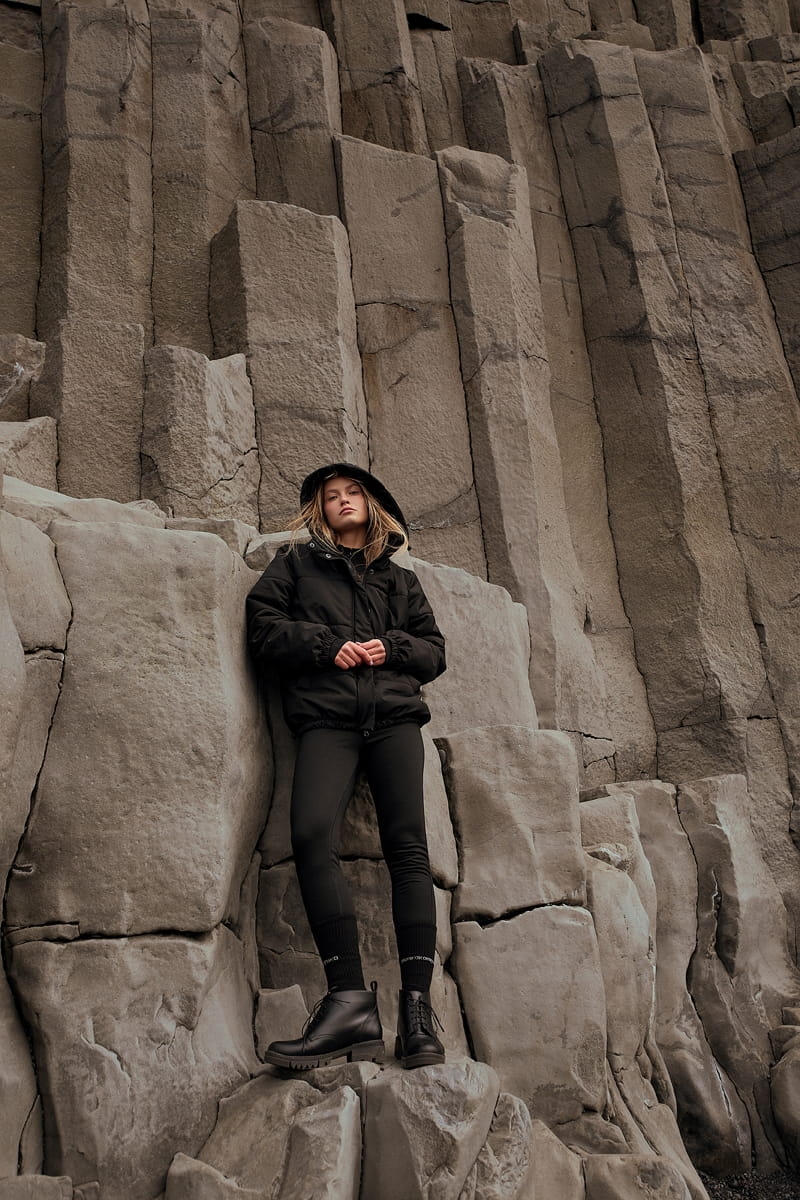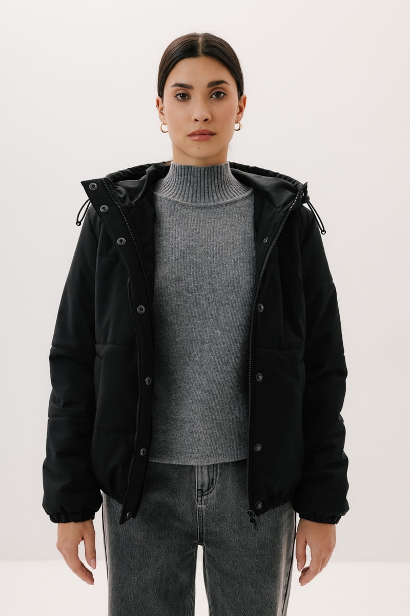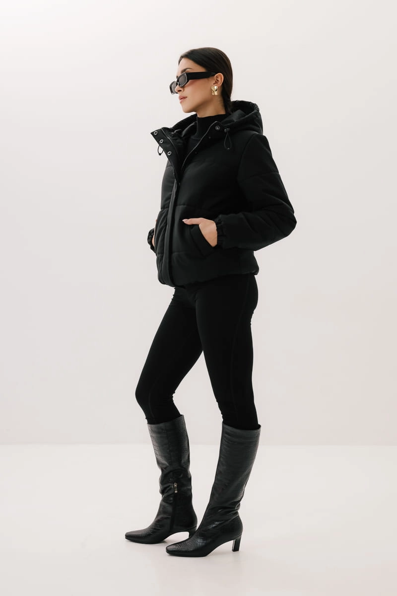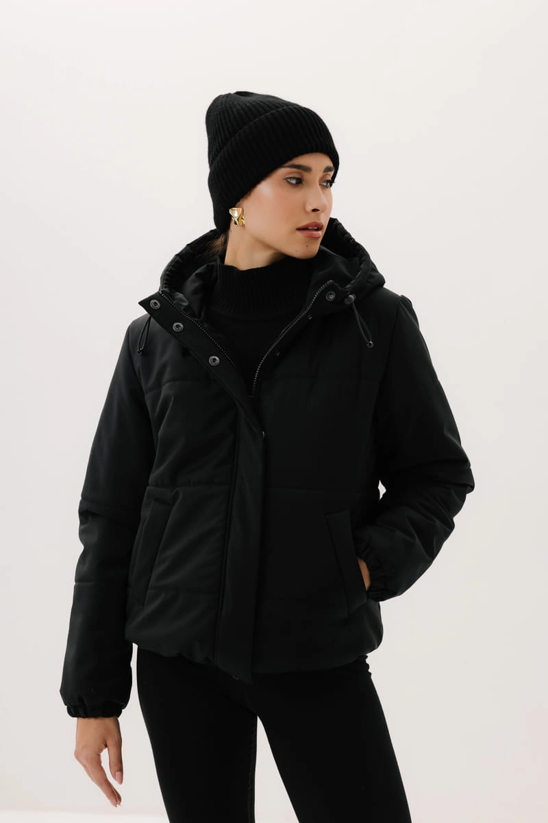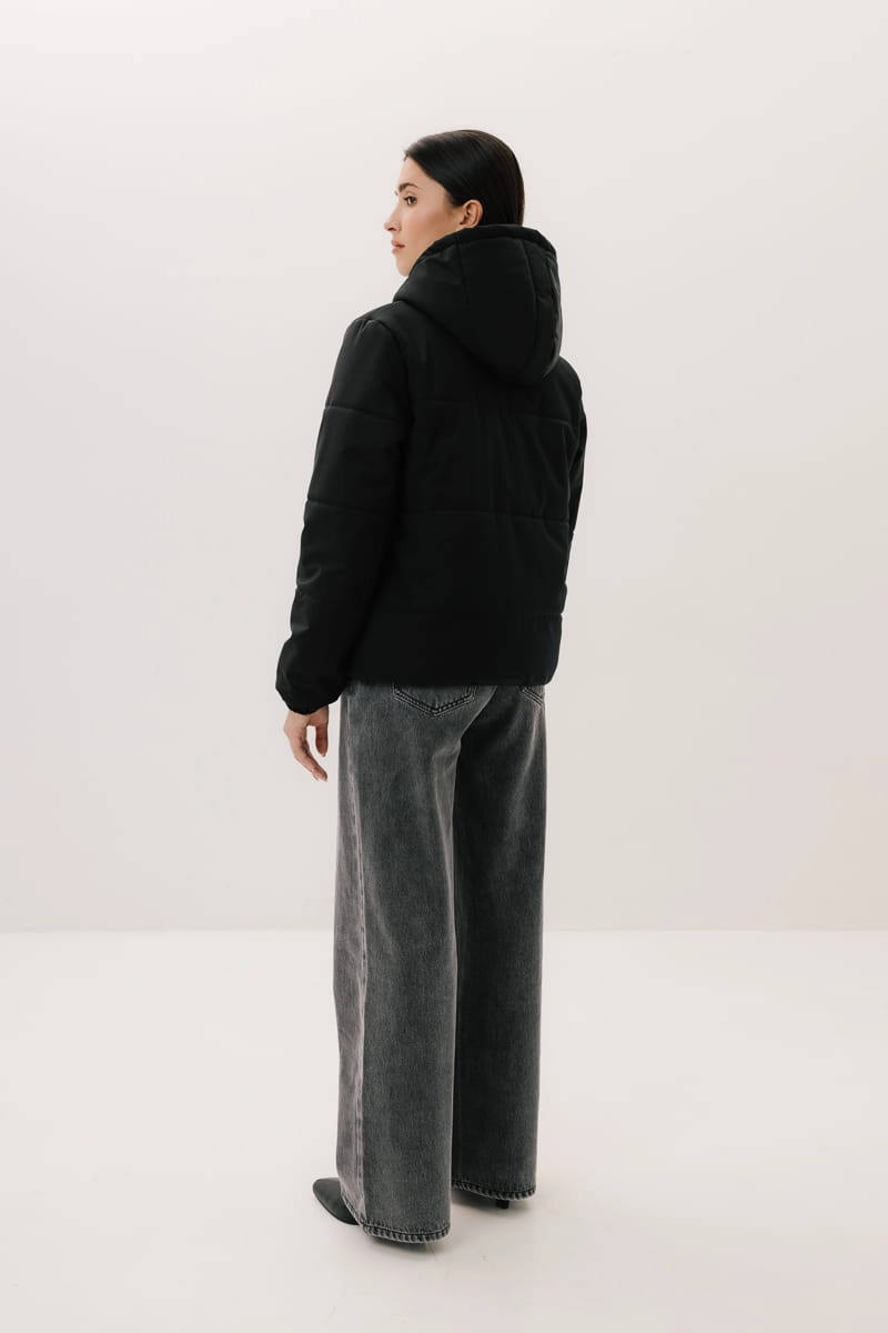 - Dodatki: guma w kapturze i na dole kurtki, metalowe stopery w kolorze ciemnego niklu;