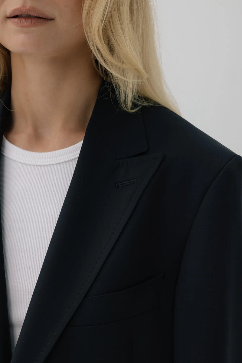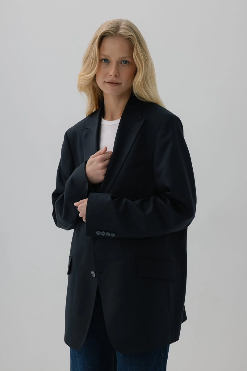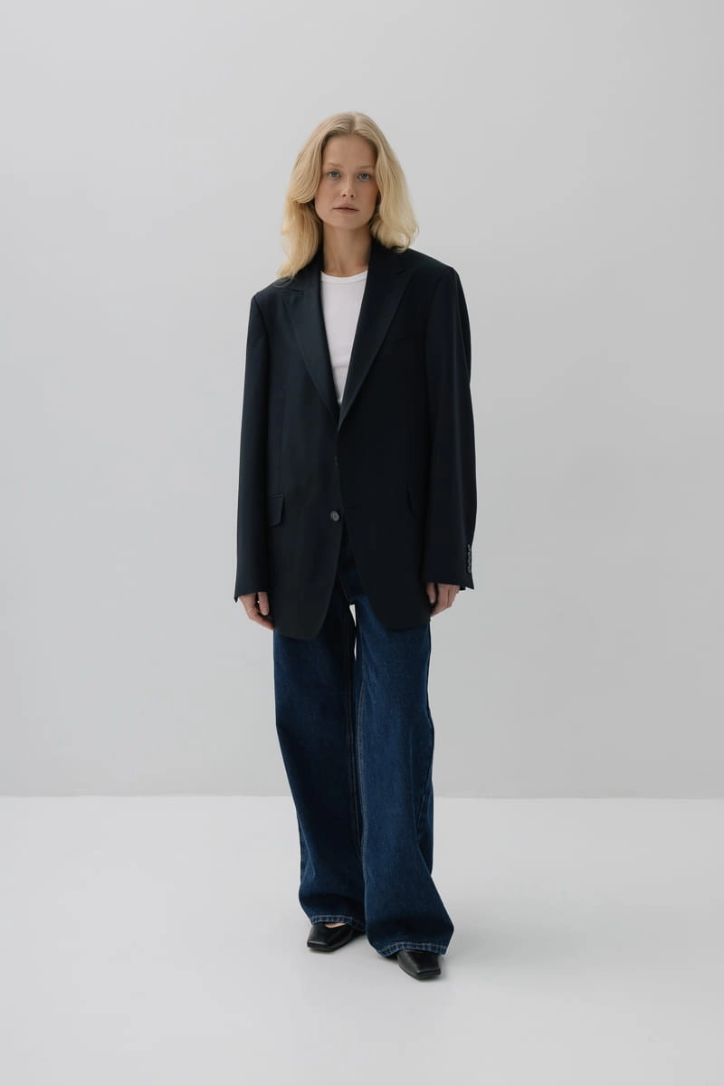 Marynarka wełniana oversize Main, granatowa