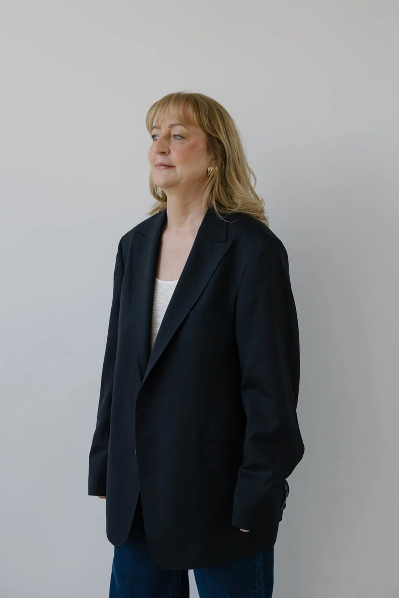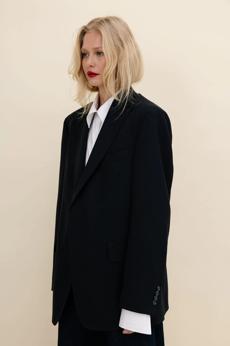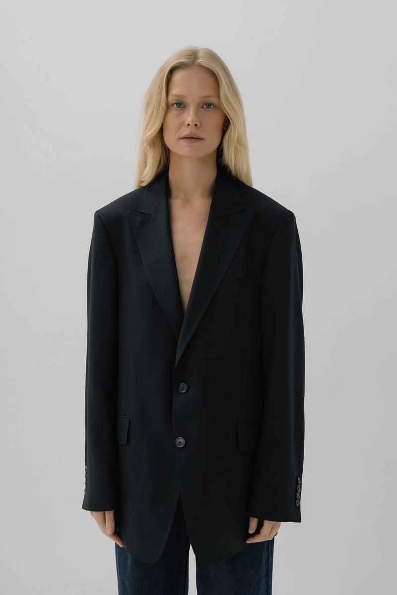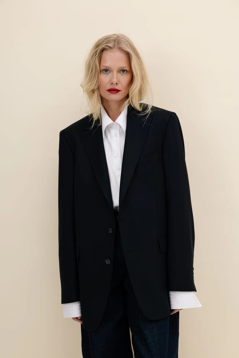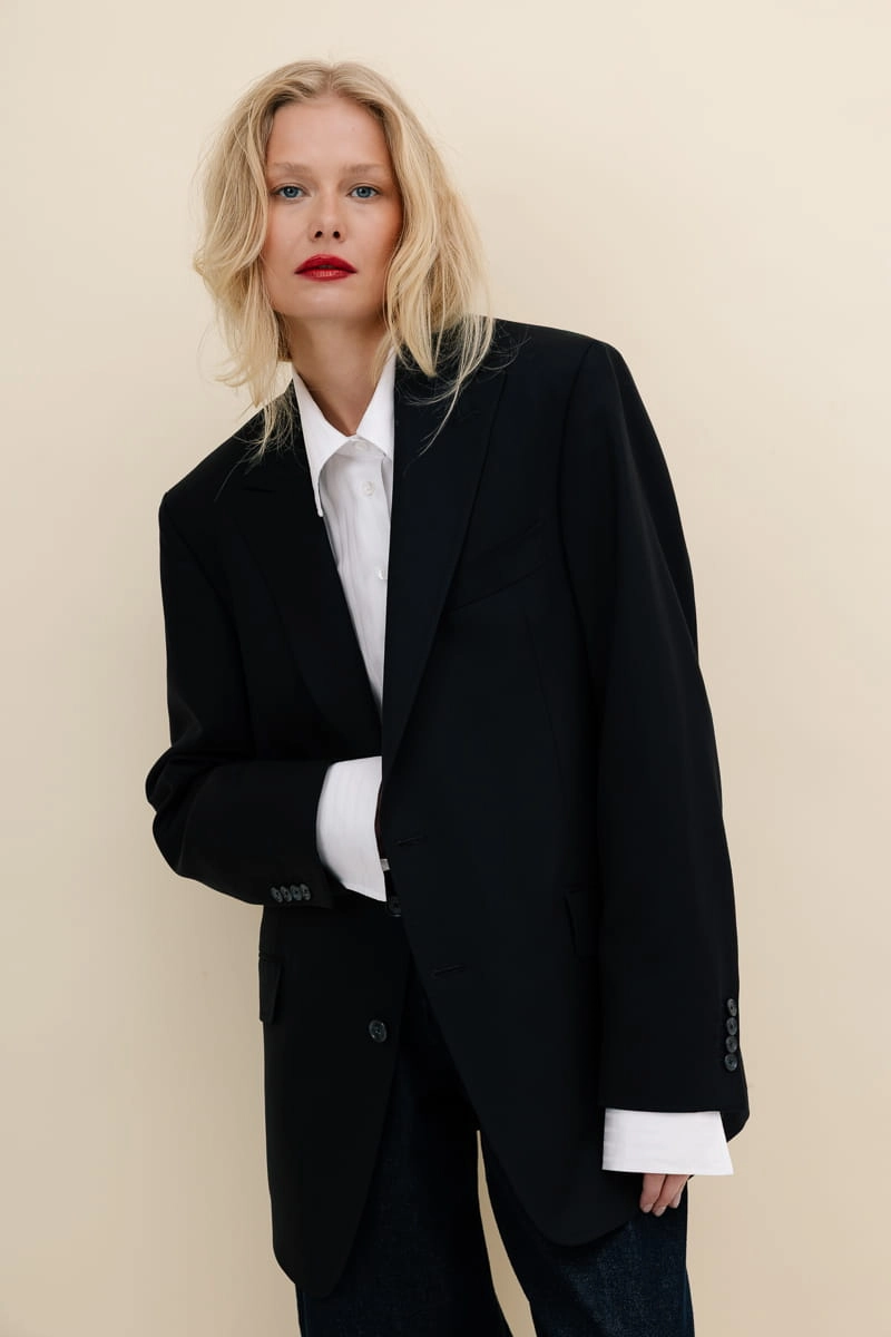 Ta oversize’owa marynarka to manifest nowoczesnego stylu. Wyrazista forma spotyka się z minimalizm. Ostre, dynamiczne klapy budują sylwetkę z charakterem, a precyzyjnie umiejscowiona brustasza, zaczerpnięta z klasyki męskiej sartorialności, wprowadza wyrazisty akcent. Designerskie kieszenie z klapami podkreślają jej nowoczesny styl, a komfortowy krój zapewnia swobodę ruchów, dzięki czemu sprawdzi się zarówno w formalnych sytuacjach, jak i podczas codziennych, casualowych stylizacji.