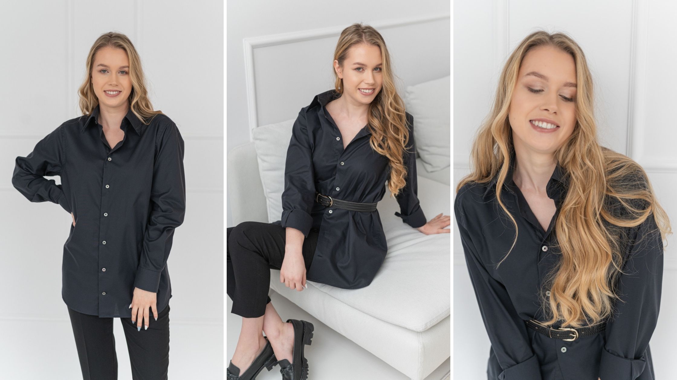 Piękno czerni jest uniwersalne. Czarna koszula oversize pasuje do wszystkiego i zawsze prezentuje się dobrze. Czerń jest elegancka i szykowna. Sprawia, że czujesz się doskonale.