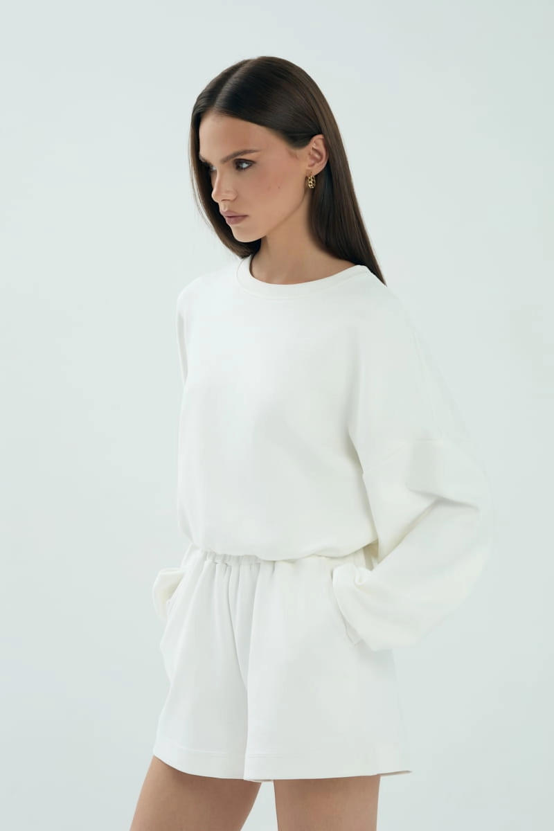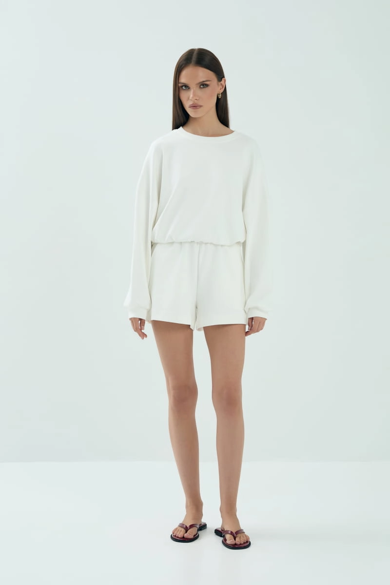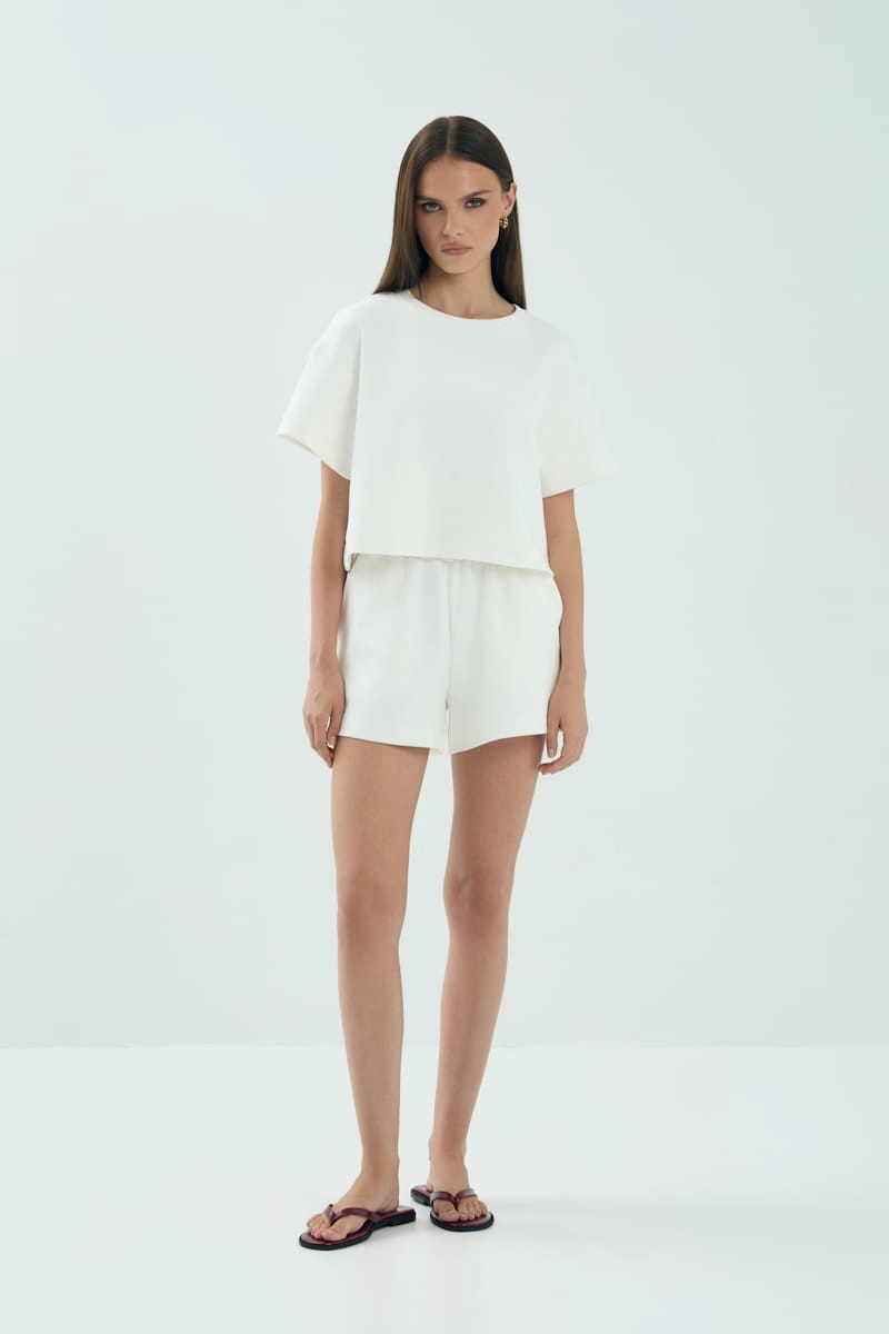 Spodenki OFF, krótkie bawełniana dzianina, kremowe