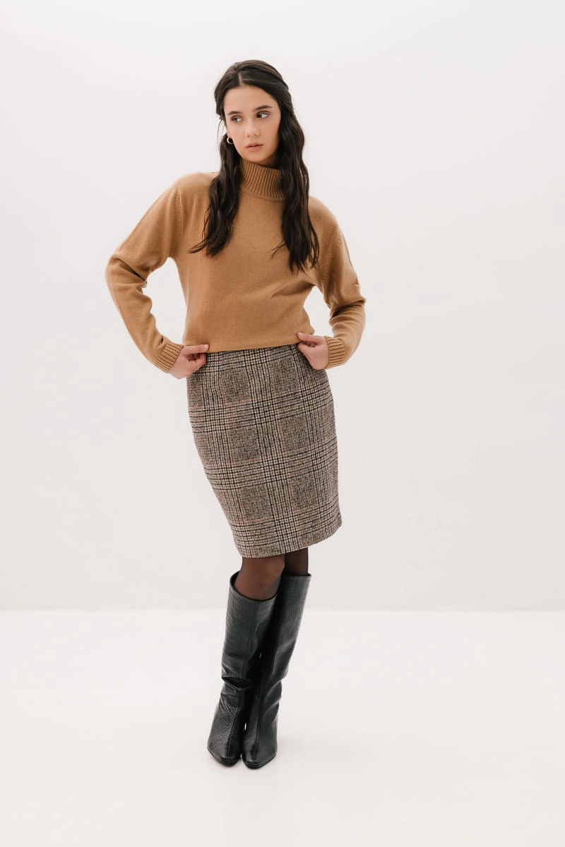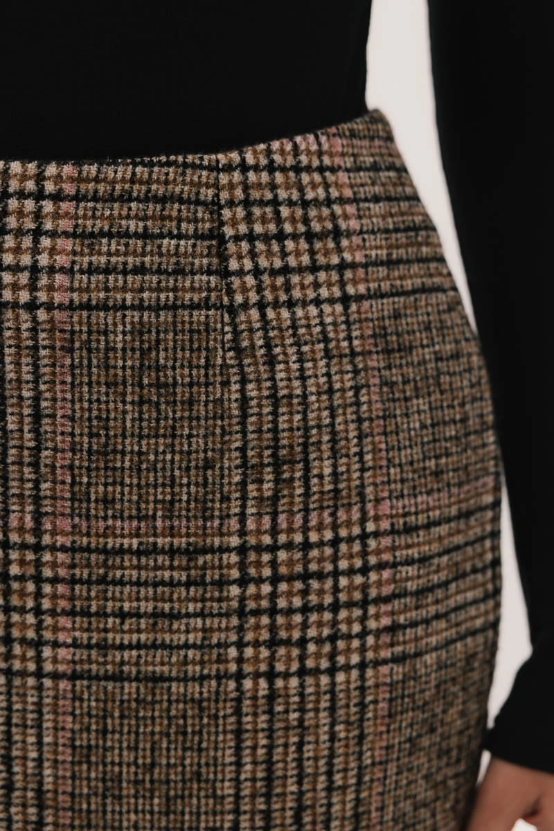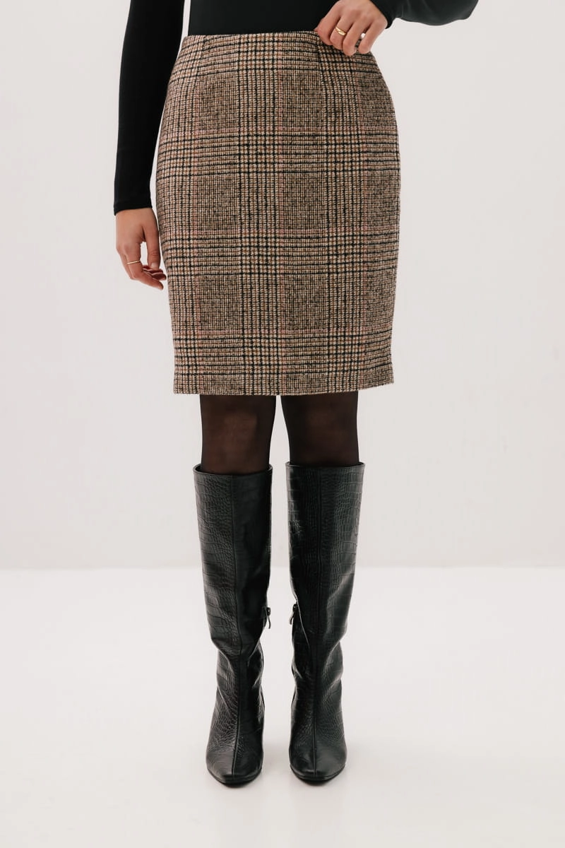 Spódnica wełniana ołówkowa Fable, beżowa kratka