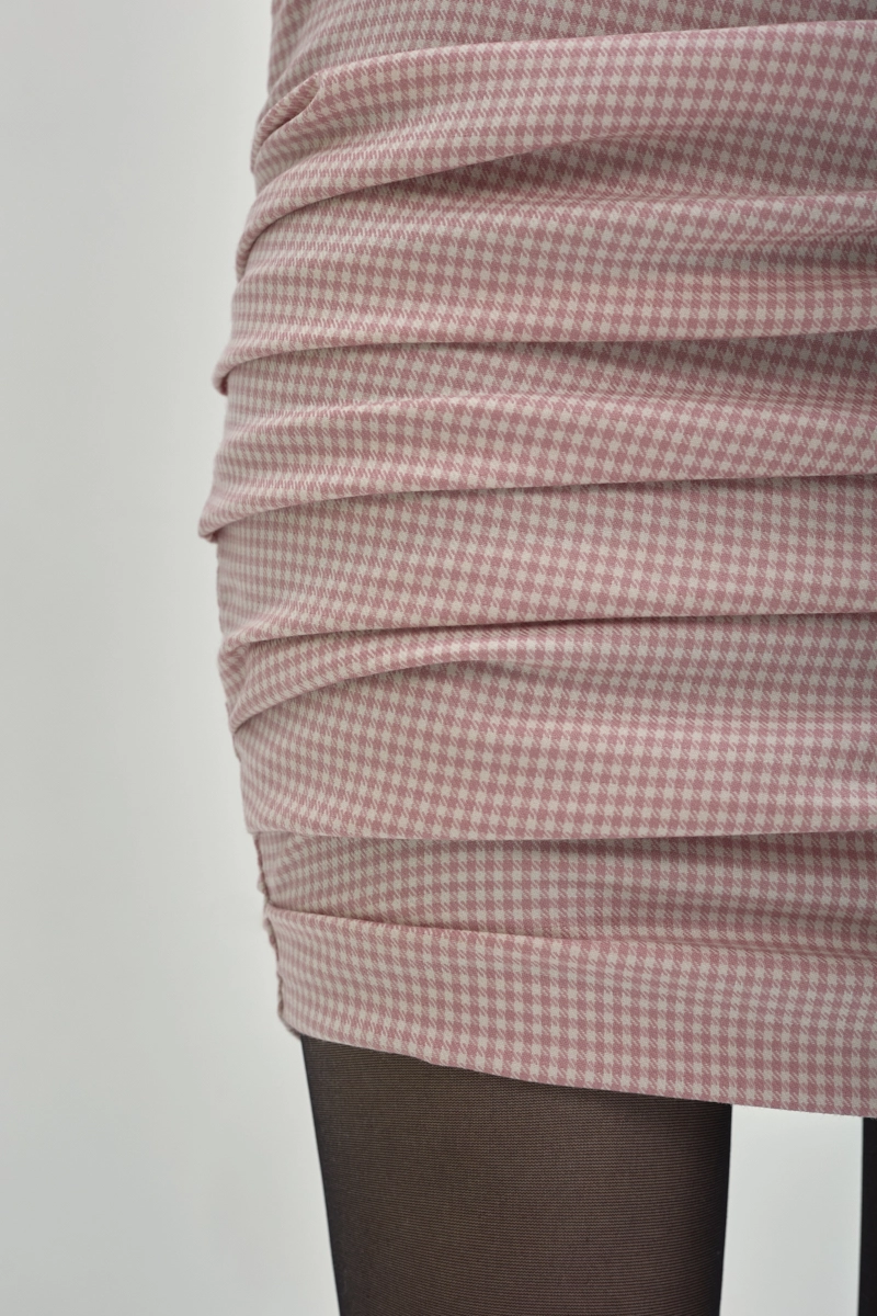 Kryty zamek z tyłu zapewnia idealne dopasowanie i wygodę noszenia, pozostając niemal niewidoczny. Długość mini subtelnie eksponuje nogi, dzięki czemu stylizacja nabiera odważnego, a jednocześnie szykownego wyrazu.