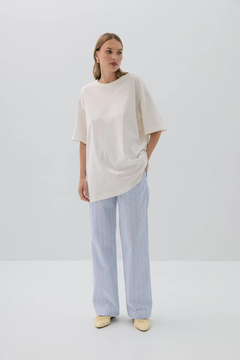 Poznaj nasze długie bawełniane spodnie z szeroką, prostą nogawką. Ten model jest doskonałym wyborem zarówno na codzienne wyjścia, jak i bardziej formalne okazje, zapewniając komfort noszenia przez cały dzień.