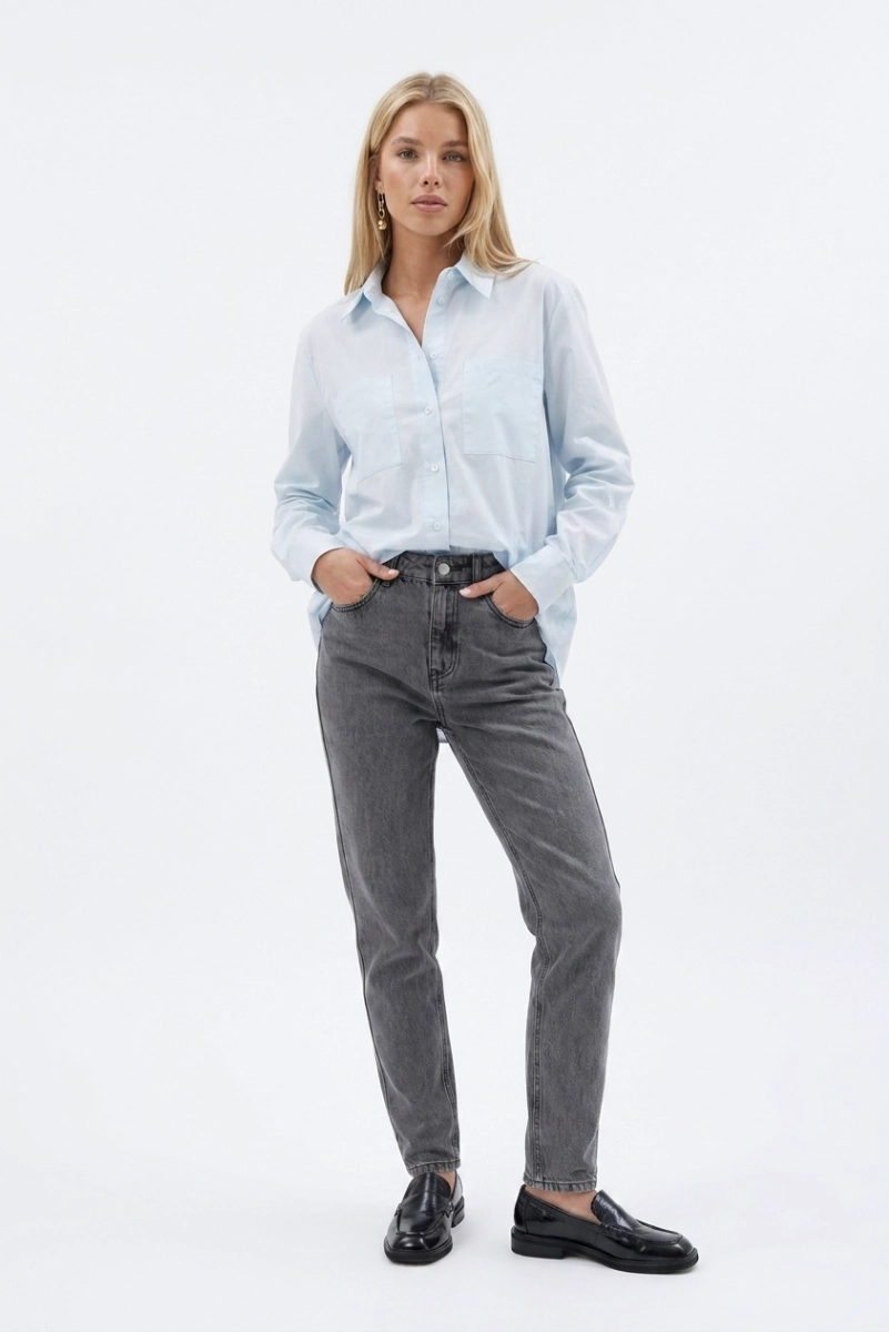 Poznaj nasze stylowe spodnie jeansowe typu mom ze zwężającą się ku dołowi nogawką, które łączą w sobie klasykę z nowoczesnym designem. Wykonane z wysokiej jakości denimu są idealnym wyborem dla osób ceniących komfort i modny wygląd.