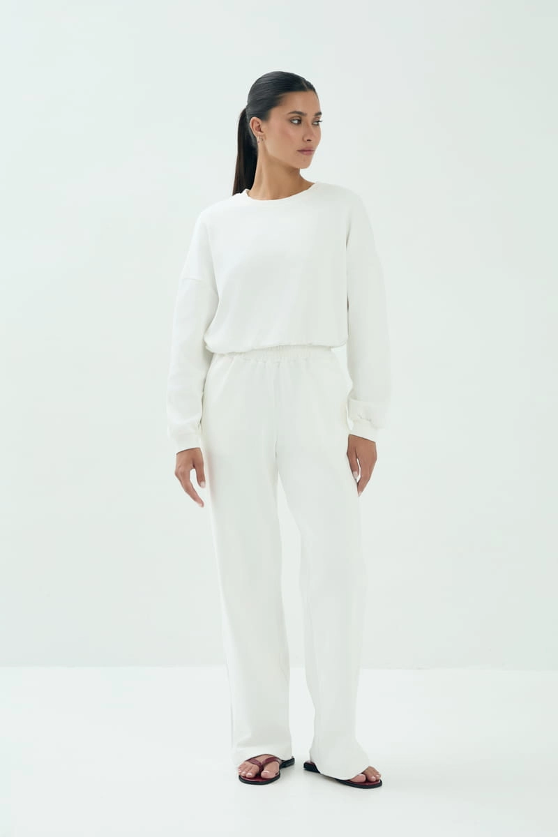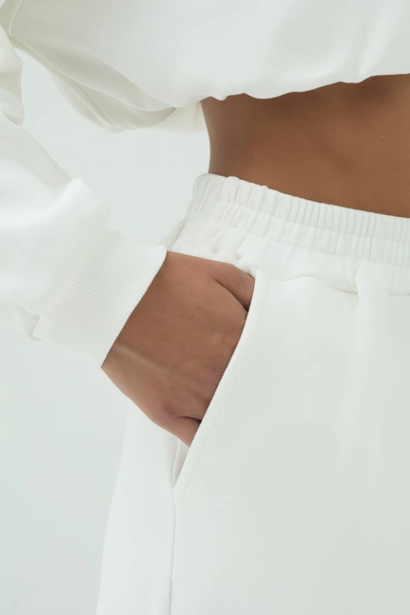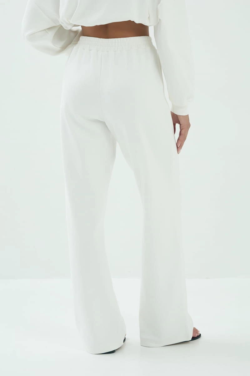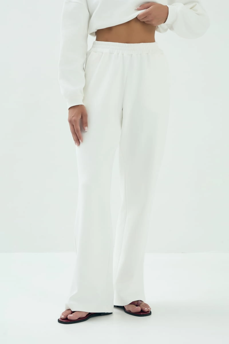 Spodnie OFF, długie bawełniana dzianina, kremowe