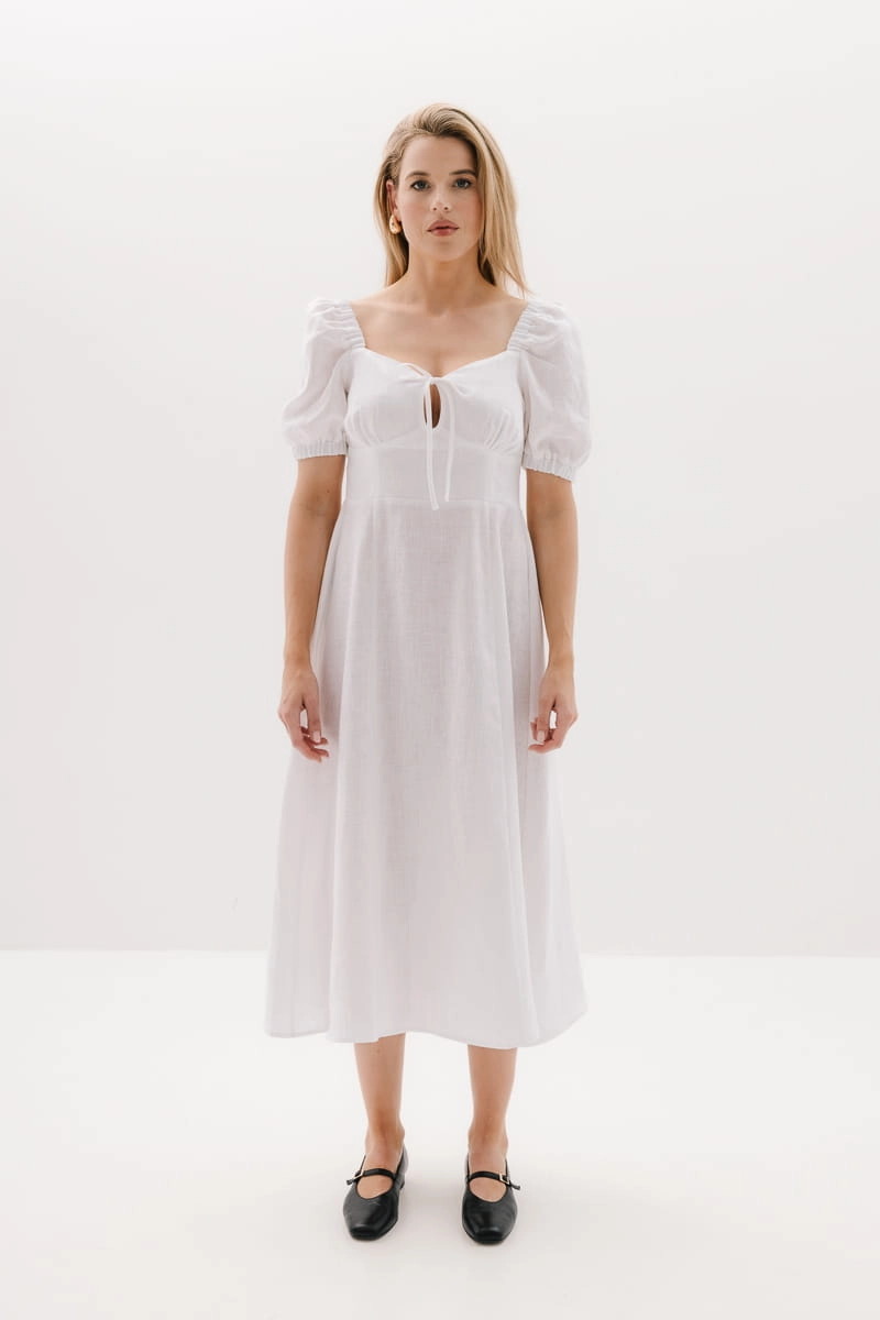 Jeśli szukasz sukienki, która łączy w sobie elegancję, wygodę i ponadczasowy styl, nasza sukienka midi z dekoltem typu serce jest dla Ciebie idealnym wyborem. Ta wyjątkowa kreacja posiada dekoracyjne wycięcie na wysokości biustu, które dodaje całości subtelnego uroku i przyciąga wzrok.