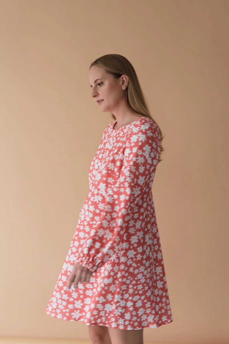 Wiskozowo-bawełniana sukienka w kwiaty Siv to idealny sposób, by wprowadzić powiew wiosennej świeżości do Twojej szafy. Ma swobodny, delikatnie rozkloszowany fason, który nadaje jej wyjątkowej lekkości. Długie, luźne rękawy zakończyliśmy gumeczką, by pięknie się układały i dawały Ci możliwości dopasowania – możesz je dowolnie podwinąć, bez obaw, że będą się zsuwać. Nasza sukienka w kwiaty Siv z przodu ma dekolt w kształcie litery O. Z tyłu zaś – na wycięcie w kształcie litery V. Dopracowaliśmy je tak, by spokojnie ukrywało zapięcie stanika. Ponadto, wykończyliśmy je obszytą materiałem gumeczką, by idealnie wyglądało na Twoich plecach. Co jeszcze czyni wiosenną sukienkę wiskozowo-bawełnianą Siv wyjątkową? Wzór w stokrotki! To nasz autorski print, zaprojektowany specjalnie dla marki Monika Kamińska! Został nadrukowany na materiał nowoczesną metodą pigmentową, z użyciem naturalnych barwników, przy jednoczesnym minimalnym zużyciu wody. Poza tym wybrana przez nas mieszanka wiskozy i bawełny, z której uszyliśmy wiosenną sukienkę w kwiaty Siv jest oddychająca, przewiewna i posiada certyfikat Oeko-Tex.