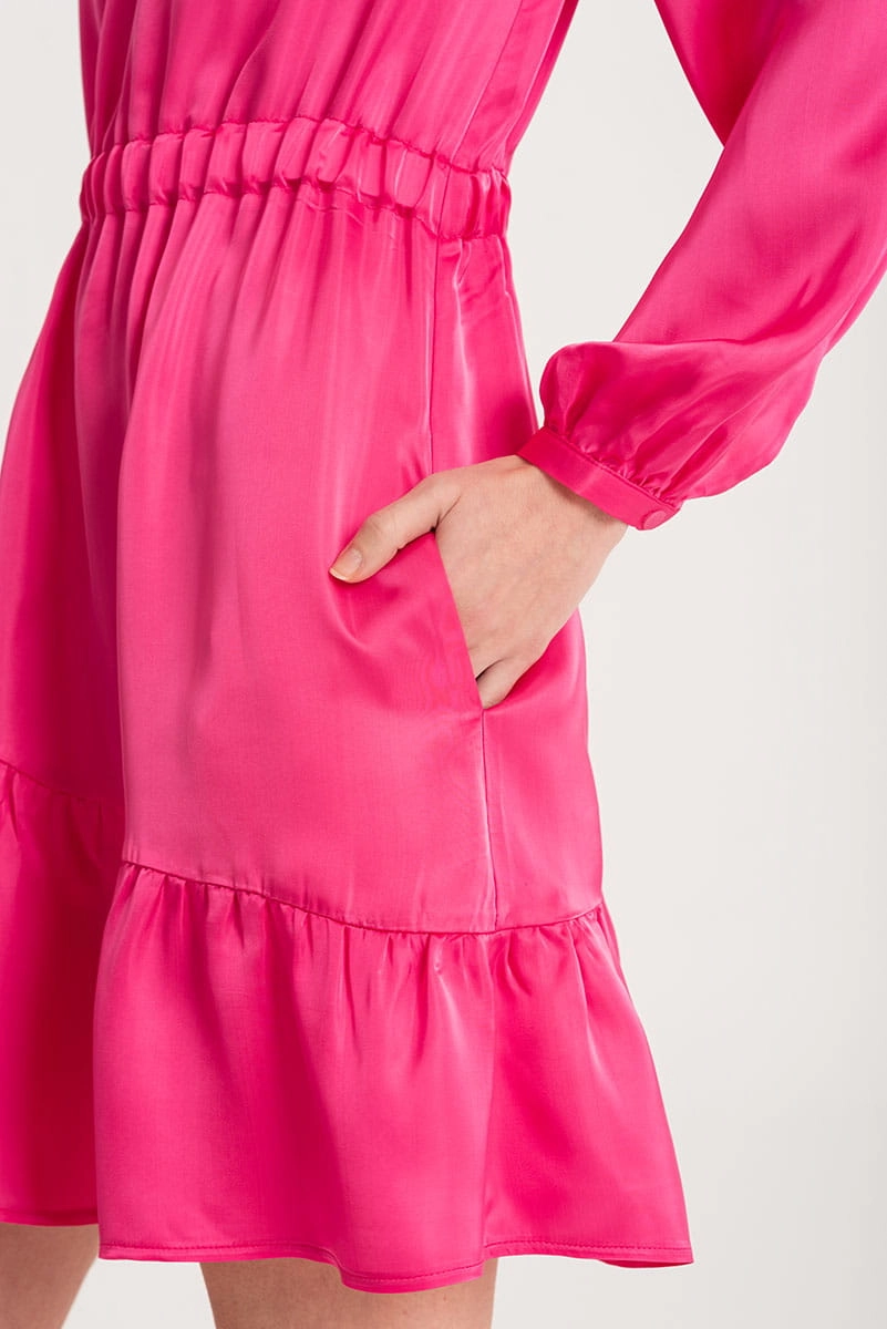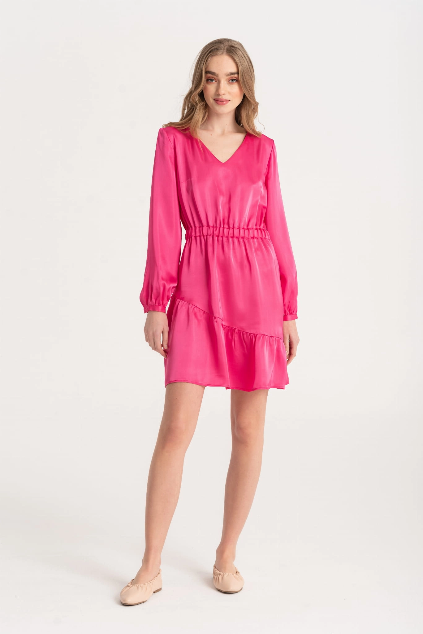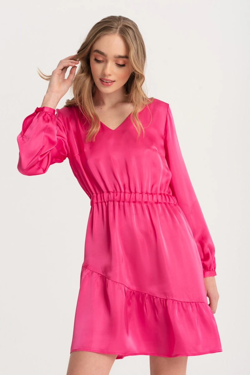 Na randkę, romantyczną kolację lub inną ważną dla Ciebie okazję proponujemy Ci naszą sukienkę Valentina w kolorze intensywnego różu. To odcień, który króluje na wybiegach i systematycznie podbija serca kobiet na całym świecie. Sukienkę Valentina uszyliśmy z wyjątkowej tkaniny – cupro. Na pierwszy rzut oka przypomina szlachetny jedwab. Subtelnie się błyszczy, przyjemnie otula skórę, fantastycznie układa się na sylwetce. Cupro, które wybraliśmy jest oddychające i perfekcyjnie reguluje temperaturę ciała. Ma także właściwości antystatyczne, jest odporne na zagniecenia oraz w pełni biodegradowalne. W sukience Valentina z cupro będziesz przyciągać spojrzenia o każdej porze roku. Różowa sukienka Valentina doskonale prezentuje się nie tylko w towarzystwie rajstop i czółenek, ale także z gołymi nogami i sandałami na obcasie. Twoją talię doskonale podkreśli wszyta w pasie gumka. Swobodę ruchów zapewni krój, nawiązujący do naszych bestsellerowych sukienek trzywarstwowych.