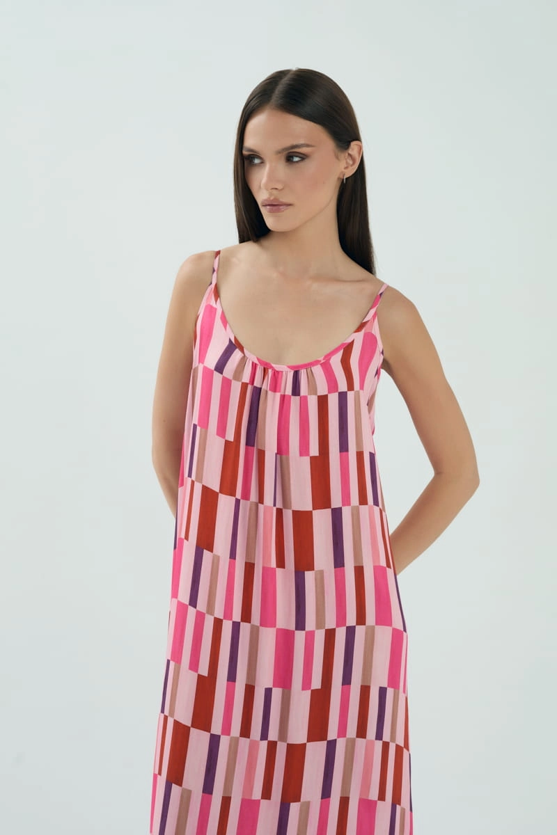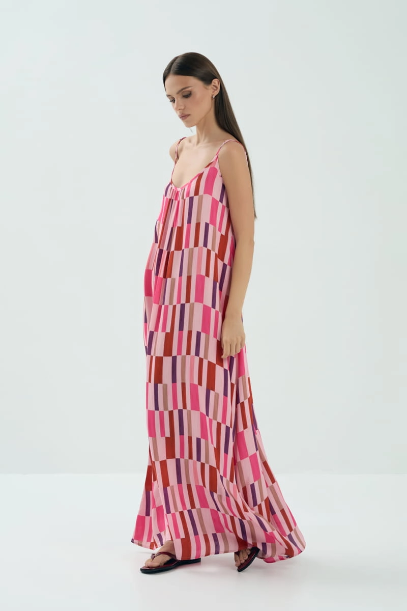 Totalna lekkość i swoboda ruchu – ta długa sukienka o luźnym kroju to kwintesencja komfortu i wakacyjnego looku. Uszyta z lekkiego, przyjemnie układającego się materiału, delikatnie otula sylwetkę, nie krępując ruchów i dając poczucie pełnej swobody.