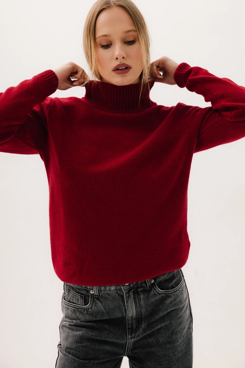 Golf z wełny merino Mild, czerwony