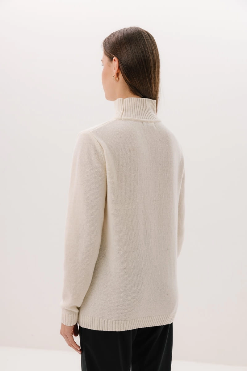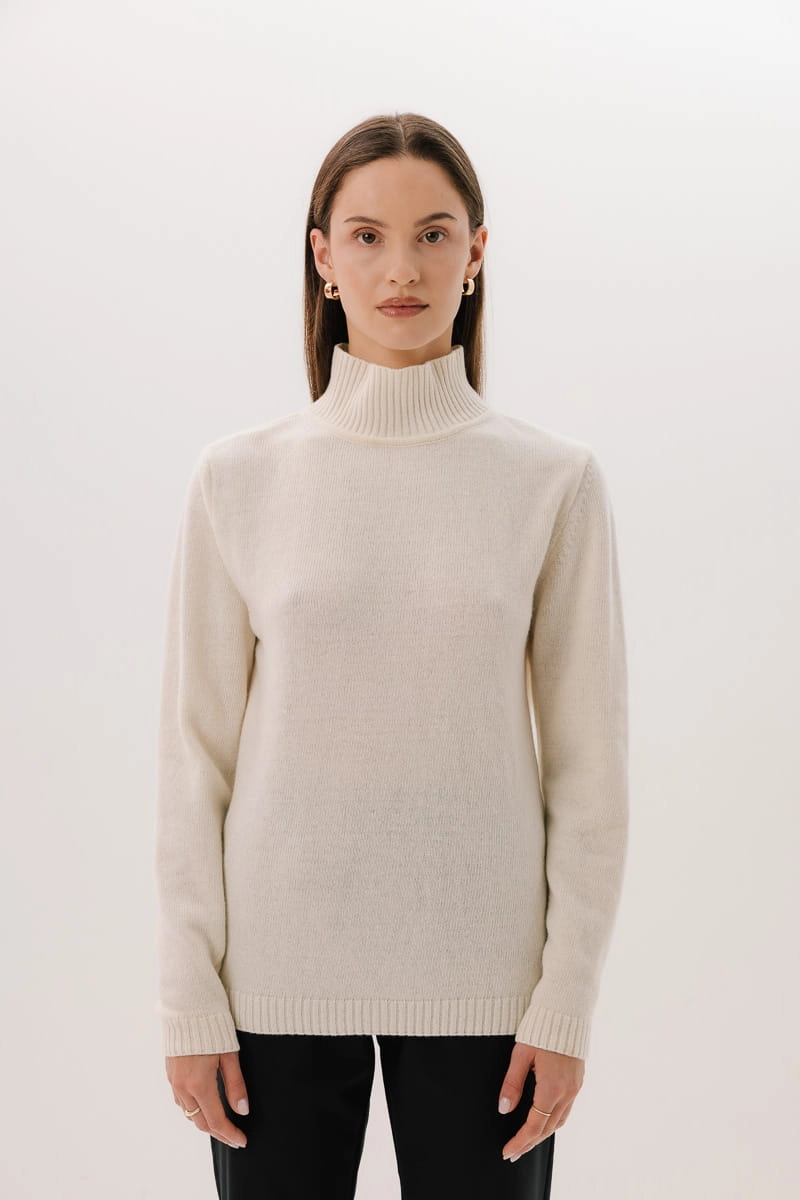 Przedstawiamy nasz sweter z golfem, wykonany z czystej wełny merino! Ten oversizowy model o ponadczasowym kroju to synonim elegancji i komfortu. Wysokogatunkowa wełna merino zapewnia wyjątkową miękkość i ciepło, jednocześnie pozwalając skórze swobodnie oddychać.