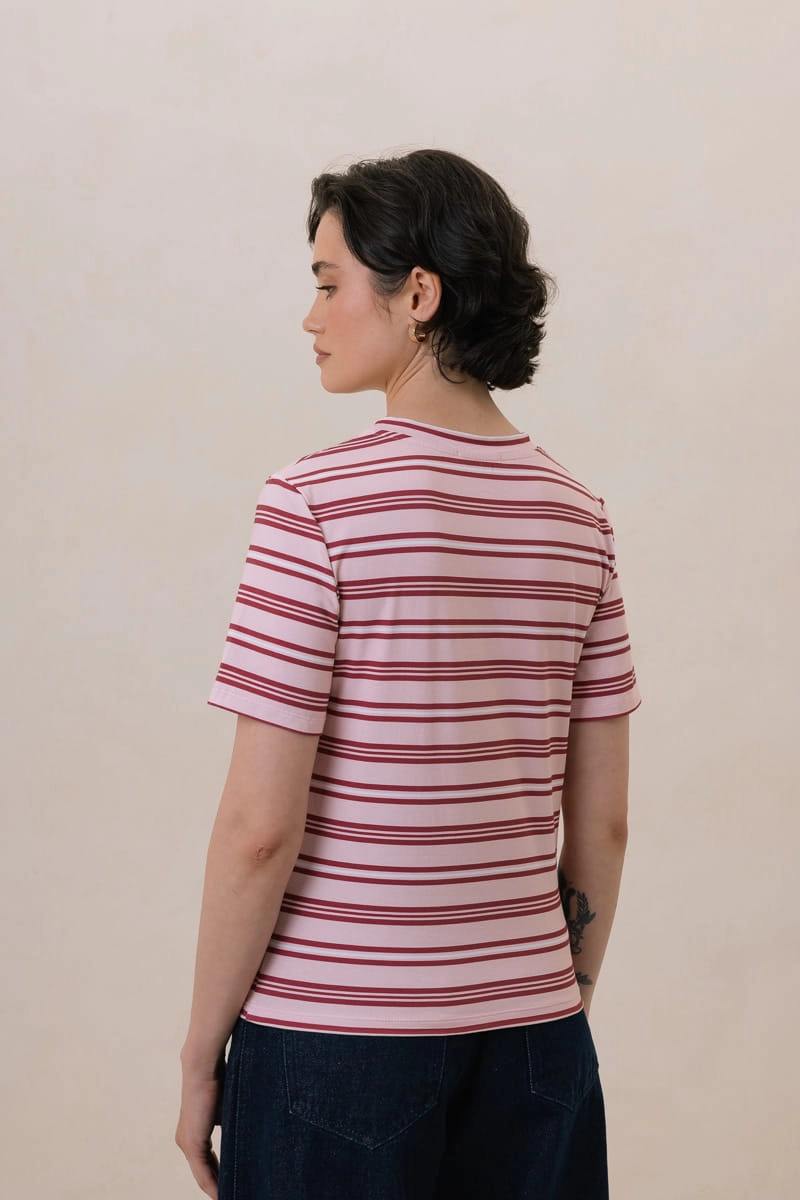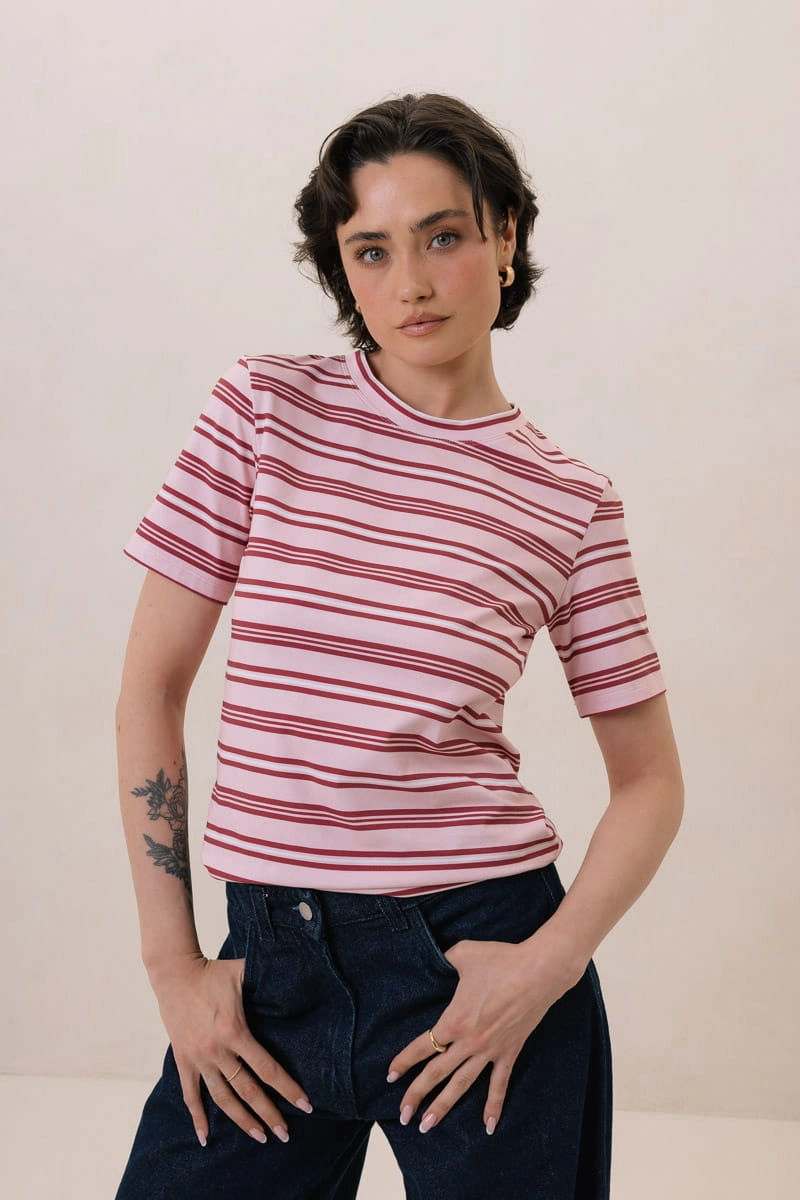 T-shirt bawełniany Milo, różowoczerwony w paski