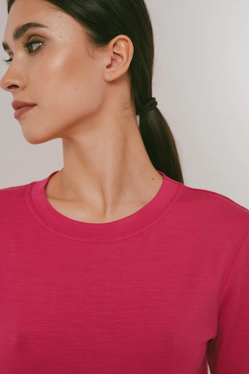 Wybierz T-shirt Motion z kolekcji Active. Dzięki materiałowi, z którego został uszyty — wełnie merino z certyfikatem ZQRX — zimą zapewni warstwę ciepła, a w trakcie ćwiczeń latem pozwoli Twojej skórze oddychać. Naturalny skład t-shirtu nie tylko zapewni tak pożądaną zimą termoregulację, lecz także pochłonie wilgoć i będzie odporny na zabrudzenia. Bez problemu może też pełnić funkcję bielizny termicznej. Założysz ją na trening jako dodatkową warstwę. T-shirt ma lekko dopasowany krój, który jednocześnie zapewnia komfort ruchów, okrągły dekolt oraz lekko przedłużony rękawek. Dodatkowo jest na tyle długi, że bez problemu włożysz go do spodni, lub legginsów, aby nie narażać Twoich pleców na przewianie.