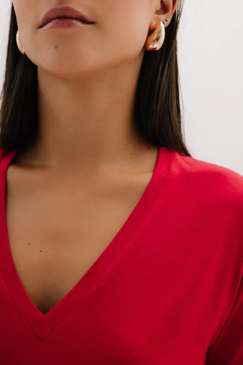 T-shirt Natural V-neck bawełniany, czerwony