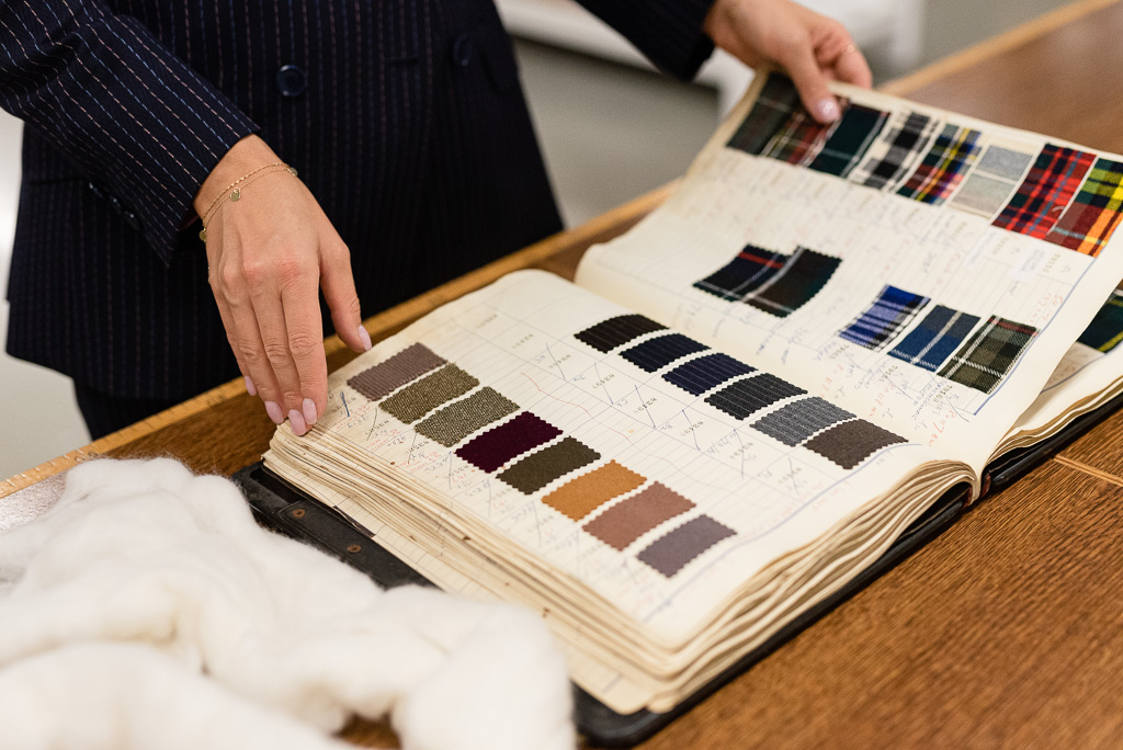 Poniżej możecie zobaczyć historyczny próbnik z letnimi tkaninami. Zatrzymajmy się przy nim na chwilę. Otóż w tkaninach premium trendy nie zmieniają się jak w kalejdoskopie. Wyprodukowanie tkaniny trwa kilka miesięcy, więc produkuje się tylko tkaniny, które nie wyjdą z mody już po jednym sezonie. Takie podejście jest niesamowicie odpowiedzialne i nawiązuje do filozofii etycznej mody. Chodzi oczywiście o to, by dana rzecz służyła nam długo oraz nie stała się za chwilę już nieaktualna.