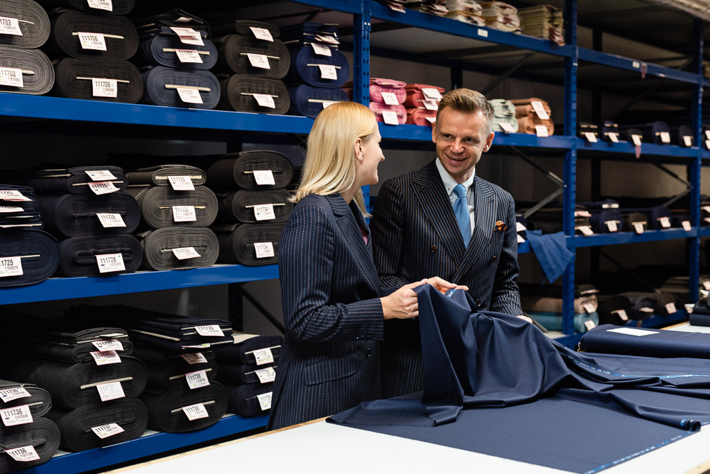 Oczywiście tkanina to jeszcze nie wszystko. Kolejnym krokiem są takie elementy jak: podszewka, guziki czy krój. Rzecz jasna nasz klient nie musi być specjalistą, to nasi doradcy w butiku pomogą wszystko dobrać odpowiednio.