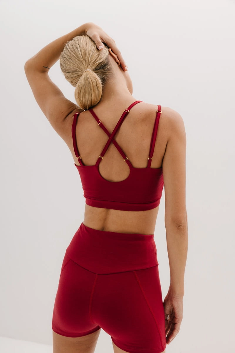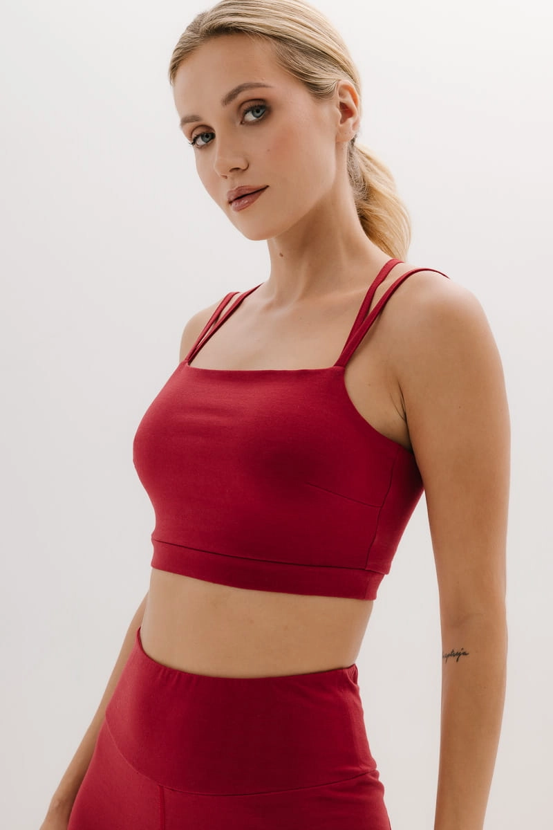 Cienkie, regulowane ramiączka krzyżujące się na plecach są nie tylko stylowe, ale także funkcjonalne. Zapewniają one dodatkową stabilność i lepsze dopasowanie, dzięki czemu top pozostaje na swoim miejscu, nawet podczas intensywnych ruchów.
