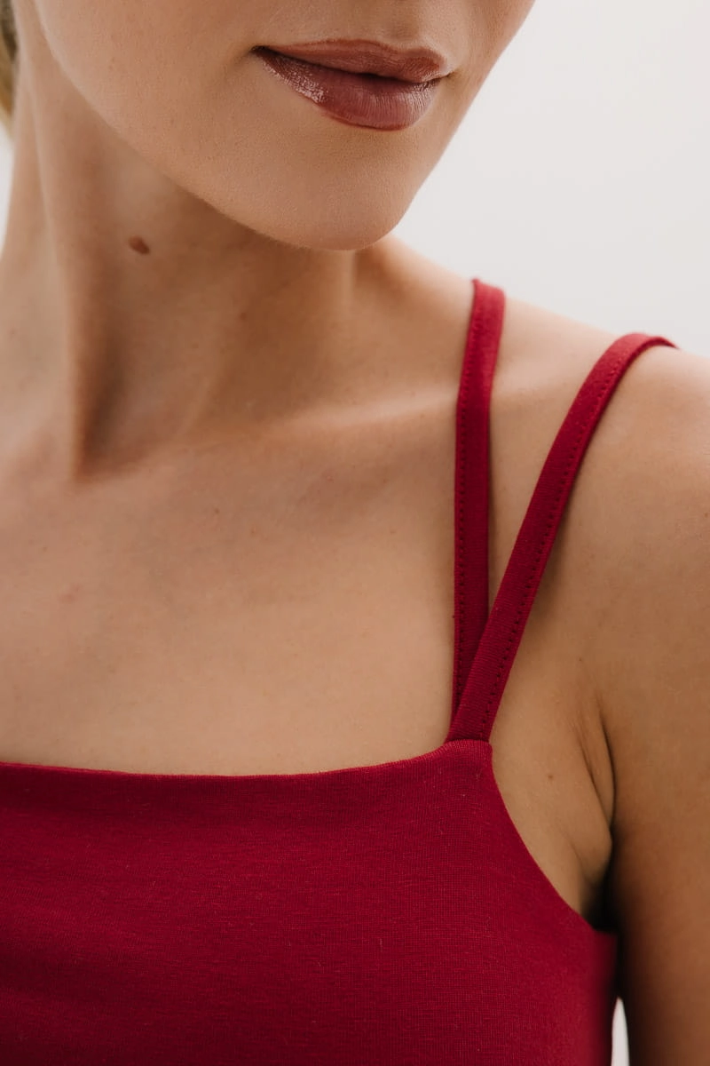 Top ma prosty, ale elegancki krój, który doskonale podkreśla sylwetkę. Wykonany z wysokiej jakości bawełny, zapewnia miękkość i oddychalność, co jest kluczowe podczas treningów czy codziennego noszenia. Dodatkowa podwójna warstwa materiału zwiększa wsparcie, co sprawia, że top doskonale sprawdza się bez konieczności noszenia dodatkowej bielizny.